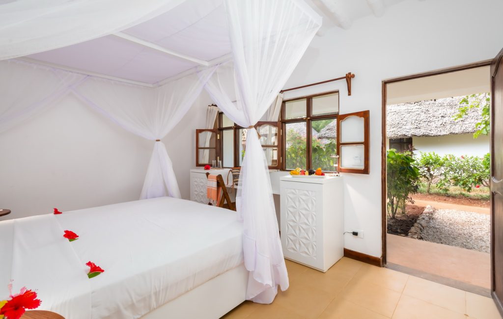 A szállásaink – amire mindig is nagy hangsúlyt fektettünk – közvetlenül az óceánparton helyezkedtek el, választástól függően kerti vagy óceánra néző szobákban. Csapatunk létszáma miatt két különböző, de egymáshoz közeli hotelben szálltunk meg, és elmondhatjuk, az új helyzetre maximálisan felkészülten fogadtak bennünket: az alkalmazottaknak kötelező maszkot viselni, több ponton fertőtlenítőket és a két méteres távolságtartásra felhívó táblákat helyeztek ki, az éttermekben az asztalokat szellősebben helyezték el. És bár jelenleg Tanzánia, és az országon belül is Zanzibár az egyik leglátogatottabb uticél, sok a főleg Közép- és Kelet Európából érkező turista, mégsem éreztük sosem zsúfoltnak. Még a legeldugodtabb kis faluban is kifogástalan körülmények és kihelyezett kézfertőtlenítők fogadtak bennünket.