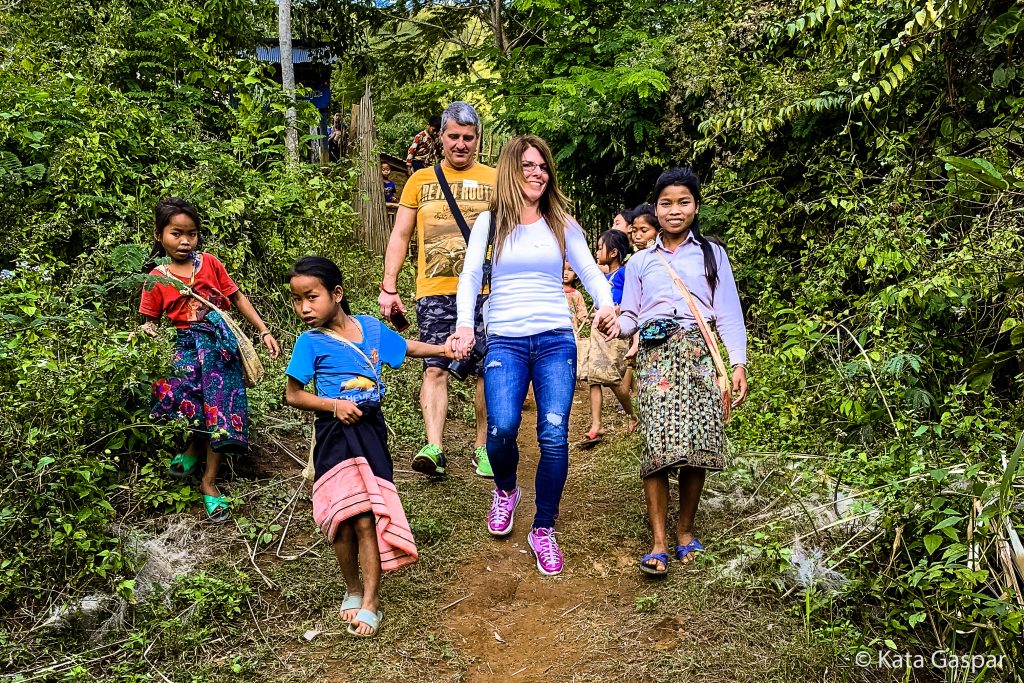 Délkelet Ázsiai utazásaink során volt szerencsénk látogatást tenni egy Mekong folyóparti khmu faluban, ahova csónakkal érkeztünk. A közösség sámánja üdvözölt bennünket és egy sereg maszatos arcú, mezítlábas kisgyerek kíséretében körbevezetett a faluban. Miközben mesélt életükről, szokásaikról, bepillanthattunk otthonaikba és a falu iskolájába is.
