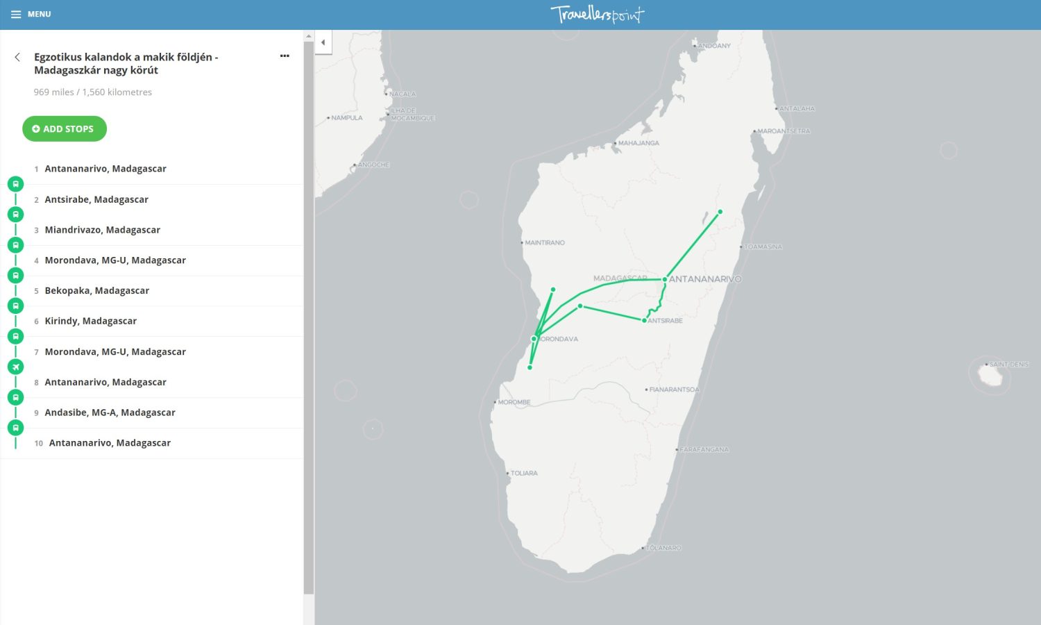 Madagaszkár nagy körút térkép